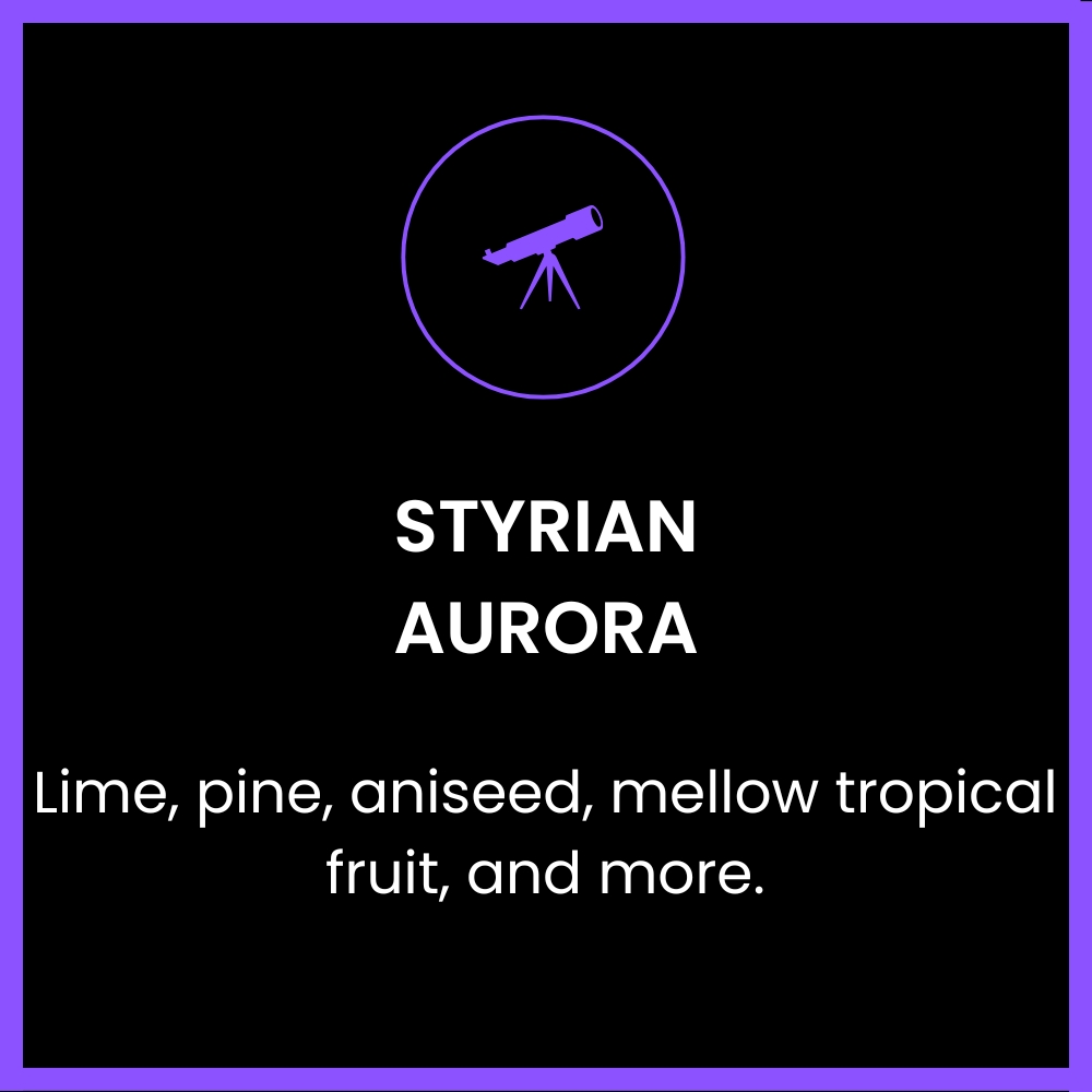 Aurora is an aroma variety bred at the Slovenian Institute of Hop Research and Brewing in Žalec from the English variety Northern Brewer and Slovenian genetic hop germplasm. This variety is recognized for its excellent agronomic traits in hop production and processing. Aurora is known for its pleasant hop aroma and bitterness and is most common in character to German Perle. Profile descriptions include mellow tropical fruit, lime, floral, pine, bergamot, lemongrass, and aniseed. Works well with classic European and British styles where noble characteristics are desired. This is an important hop for lager production globally.